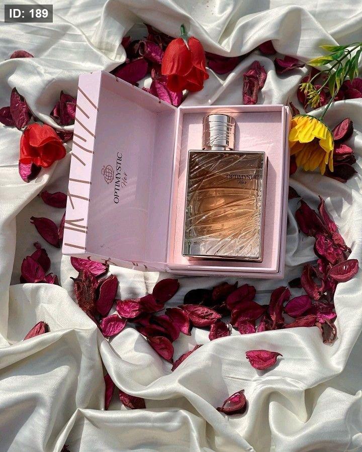 Optimystic Her عطر زهري - فواكه للنساء . Optimystic Her صدر عام 2022. إفتتاحية العطر الفراوله, توت العليق, توت العليق, الكشمش الأسود, الماندرين (اليوسفي), الكرز الحامض و الليمون; قلب العطر الياسمين و البنفسج; قاعدة العطر تتكون من المسك, الفانيليا, أخشاب الكشمير, طحلب البلوط (طحلب السنديان), الأخشاب, الباتشولي و العنبر.