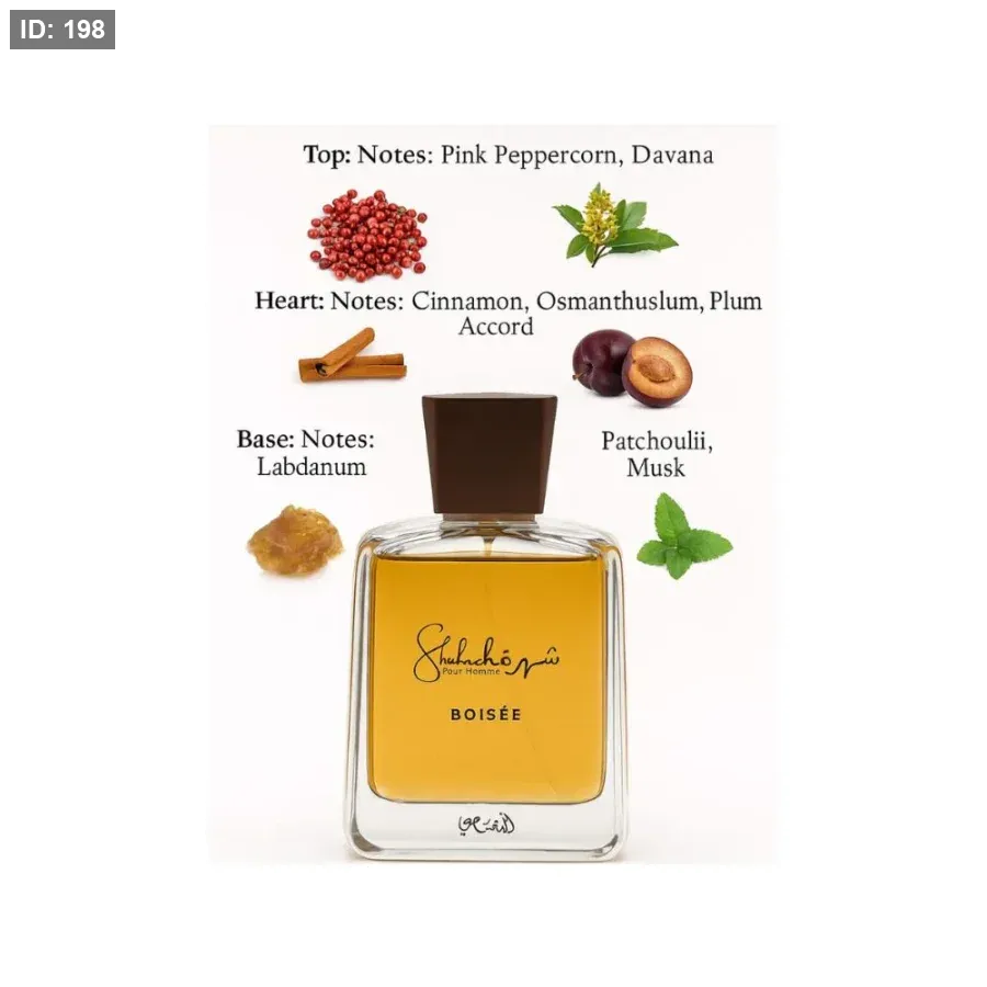 يفتتح عطرShuhrah BOISEE بنفحةٍ نابضةٍ بالحياة من البرغموت والتوابل العطرية التي توقظ الحواس. في قلب العطر، يمتزج العنبر والخزامى مع حبوب التونكا ليخلقا دفئًا رجوليًا مريحًا. أما في قاعدته، فتضفي نفحات الفانيليا العميقة مع الأخشاب الثمينة والمسك أناقةً وثباتًا وعمقًا على أثر العطر.