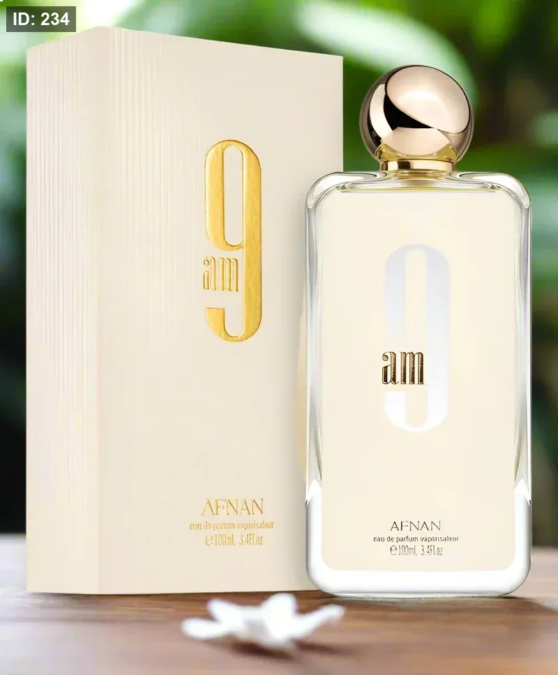 9am Afnan عطر للنساء . إفتتاحية العطر الليمون, الماندرين (اليوسفي), الهيل و الفلفل الوردي; قلب العطر الخزامي, زهر البرتقال, التفاح الأخضر و الورد; قاعدة العطر تتكون من المسك, الطحالب, خشب الأرز و الباتشولي.