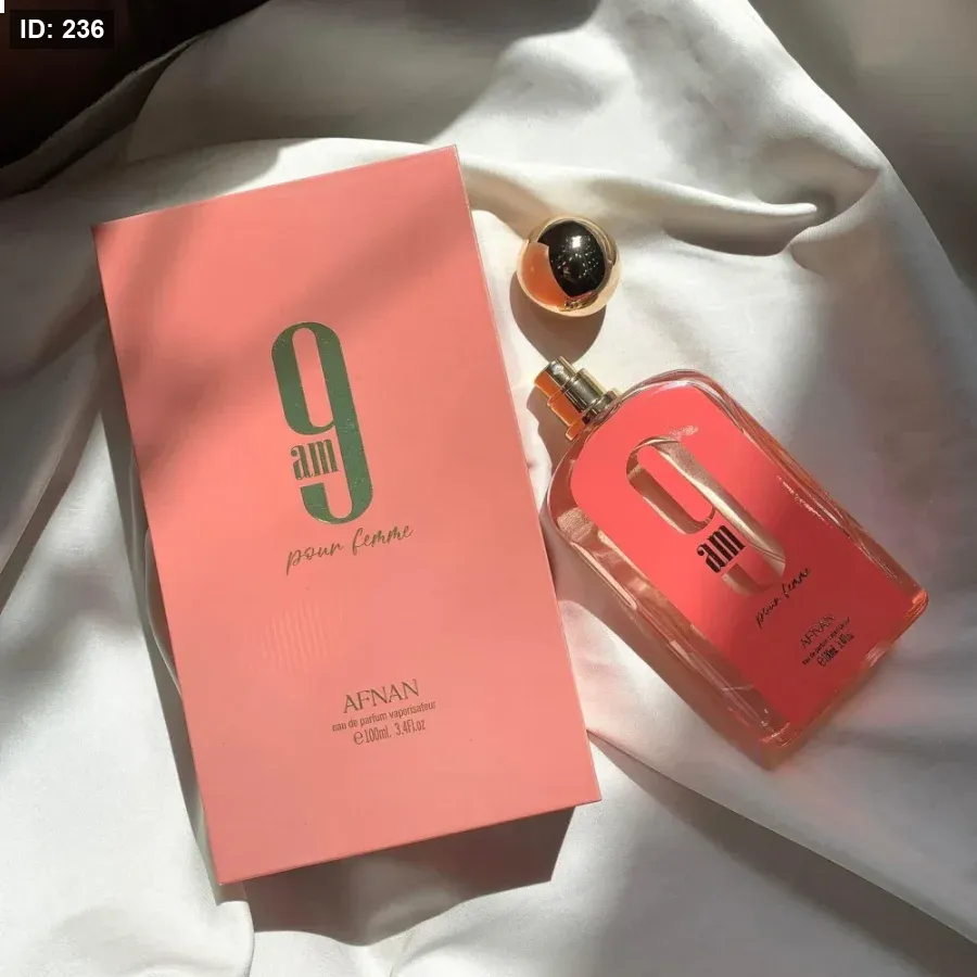 9am pour Femme Afnan عطر شرقي للنساء . 9am pour Femme إفتتاحية العطر الجريب فروت, البرغموت و الماندرين (اليوسفي); قلب العطر توت العليق و الكشمش الأسود; قاعدة العطر تتكون من المسك, العنبر و البرتقال.