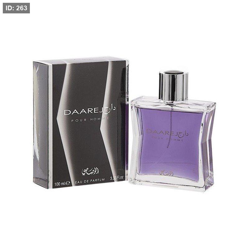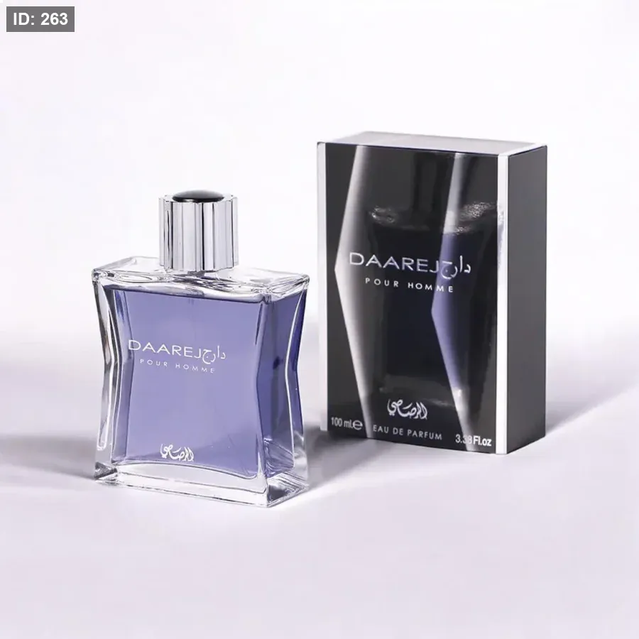 Daarej pour Homme Rasasi عطر شرقي - حار للرجال . إفتتاحية العطر الكمون, الهيل و الشيح; قلب العطر الورد و جذور السوسن; قاعدة العطر تتكون من الفانيليا, حبوب التونكا, العنبر, خشب الصندل, الباتشولي و المسك.