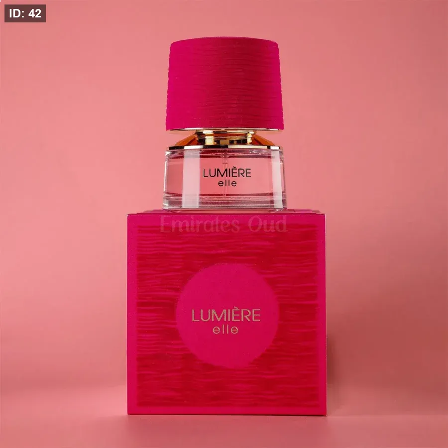 LUMIERE elle عطر زهري للجنسين. هذا عطر جديد صدر عام 2024. إفتتاحية العطر الزنجبيل, الماندرين (اليوسفي) و الكمثري; قلب العطر زهر البرتقال, الورد و الياسمين; قاعدة العطر تتكون من الآمبرغريس, فلفل بيروفي و خشب الصندل.