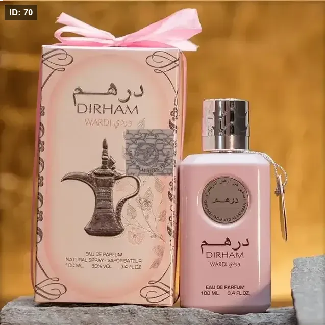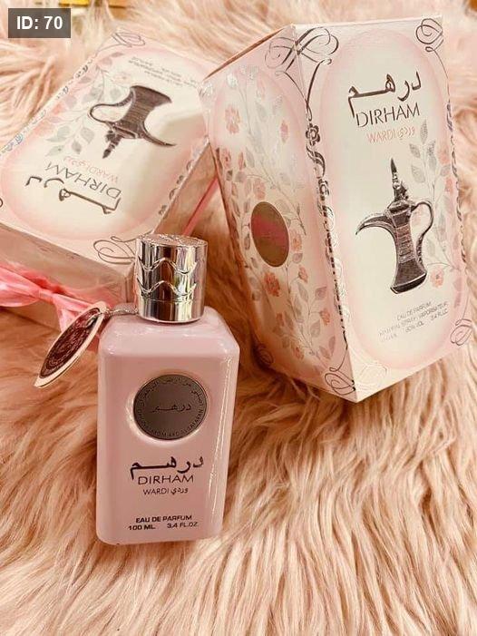 Dirham Wardi Ard Al Zaafaran عطر للنساء . إفتتاحية العطر الورد, زهر البرتقال, الكمثري و الكشمش الأسود; قلب العطر السوسن, حلوي اللوز و الياسمين; قاعدة العطر تتكون من الباتشولي, الفانيليا و حبوب التونكا.