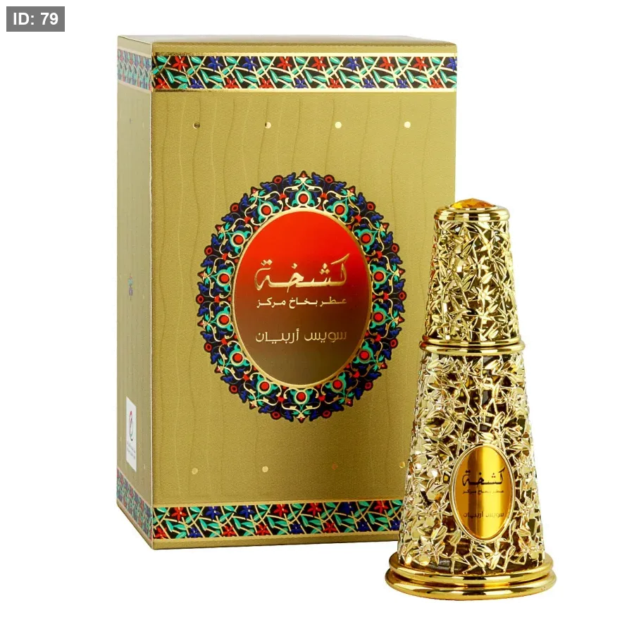 Kashkha Swiss Arabian عطر شرقي - حار للنساء . إفتتاحية العطر التفاح, القرفة و البرغموت; قلب العطر العود, القطيفة, الزعفران, الهيل و القرنفل; قاعدة العطر تتكون من خشب الأرز, خشب الصندل, المسك, نجيل الهند, العنبر و البلوط.